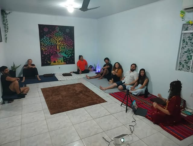 NÃO. Zero nudez, zero toque íntimo, zero exposição. É tudo meditativo, energético, individual. Você fica de roupa, no seu tapete, fazendo práticas guiadas de respiração e visualização. 100% seguro e respeitoso.